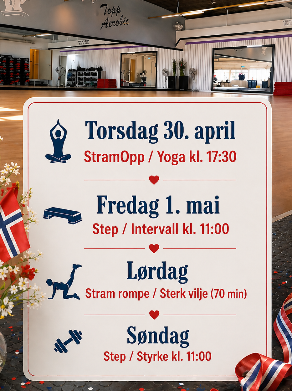 Det er viktig at du setter av tid til trening! Hold deg frisk, sprek og glad sammen med oss på Topp Aerobic !
